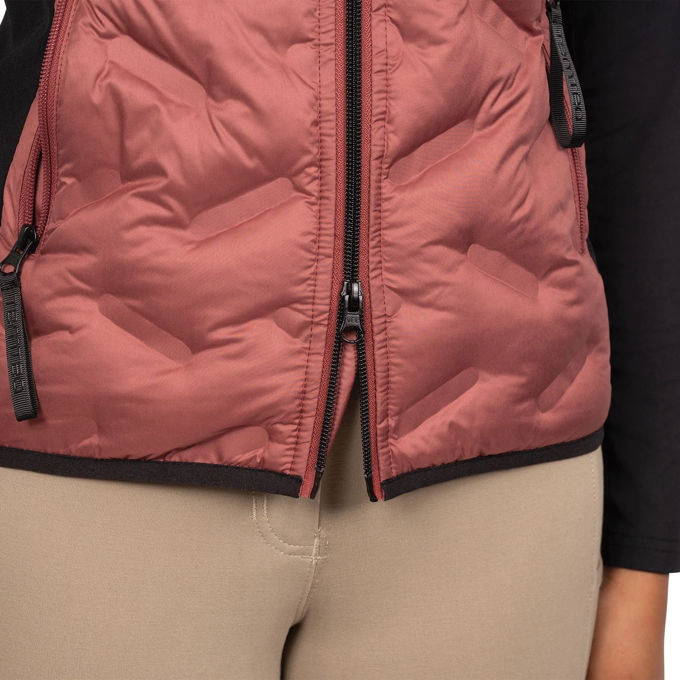 Exclusive to Greenhawk! The TemTeq Equestrian Devin Vest offers a lightweight and quilted design with knit side panels lined in fleece for added comfort. Features a fleece lined collar, and elastic band detailing at the arm and armholes. Wind-resistant and complete with a 2-way zipper front, and zippered pockets for added security.