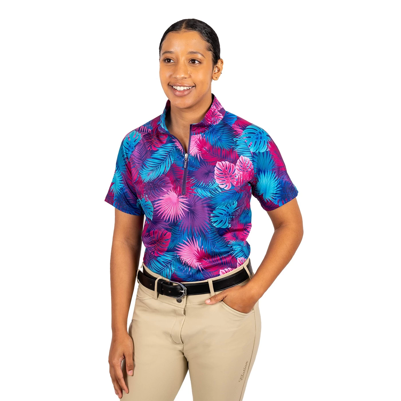 The TemTeq Equestrian Gili top is made of quick-drying stretch fabric with an SPF of 50+, providing excellent sun protection. This long sleeve base layer features soft mesh panel under the arms along with an antimicrobial treatment creating the perfect summer top. A quarter-front zip with Tempo zipper puller and raglan sleeves provide maximum comfort.