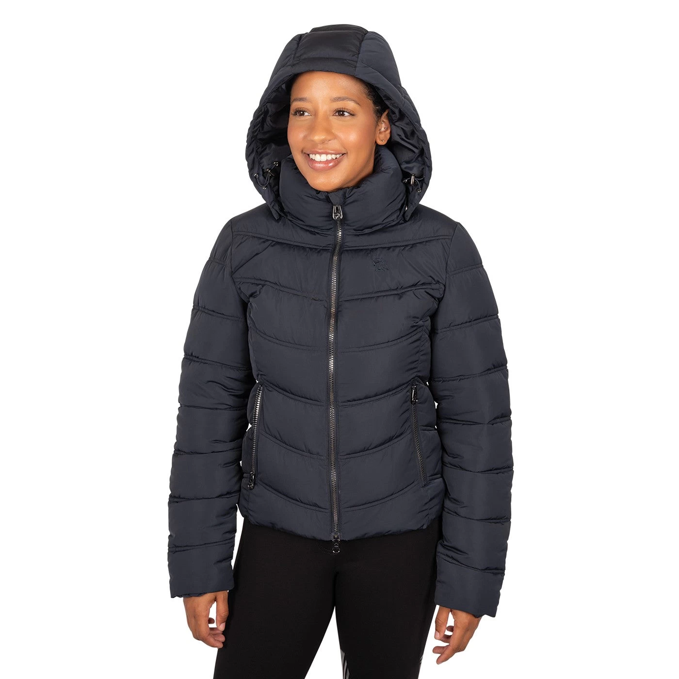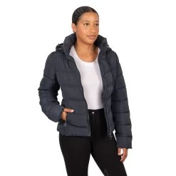 Exclusive to Greenhawk! The TemTeq Equestrian Madeline Jacket offers a customer favourite, now converted into a padded jacket. Features a short collar to accommodate the detachable, snap off, hood. Complete with a 2-way front zipper, front pockets, a wind flap, and chin guard for added protection from the elements.