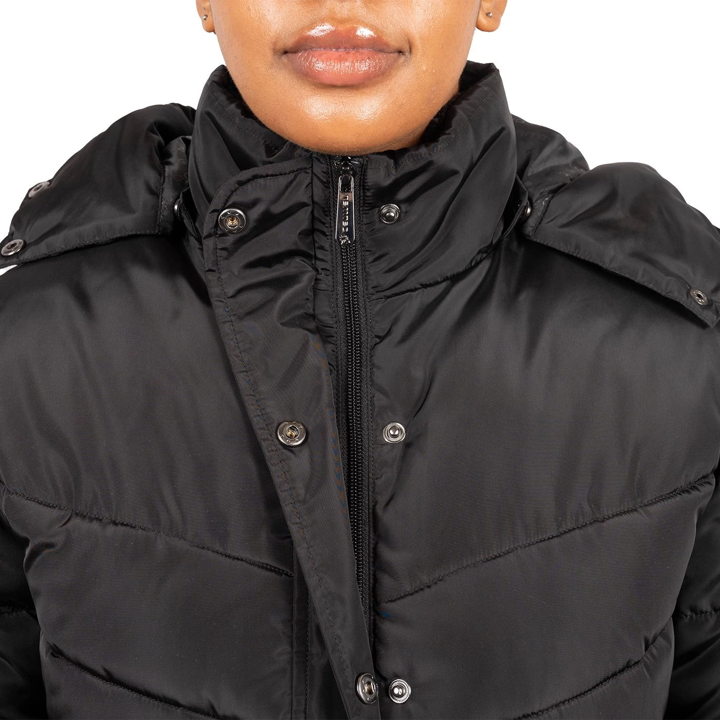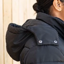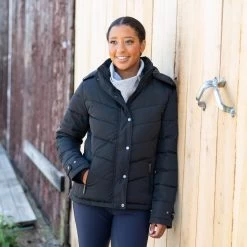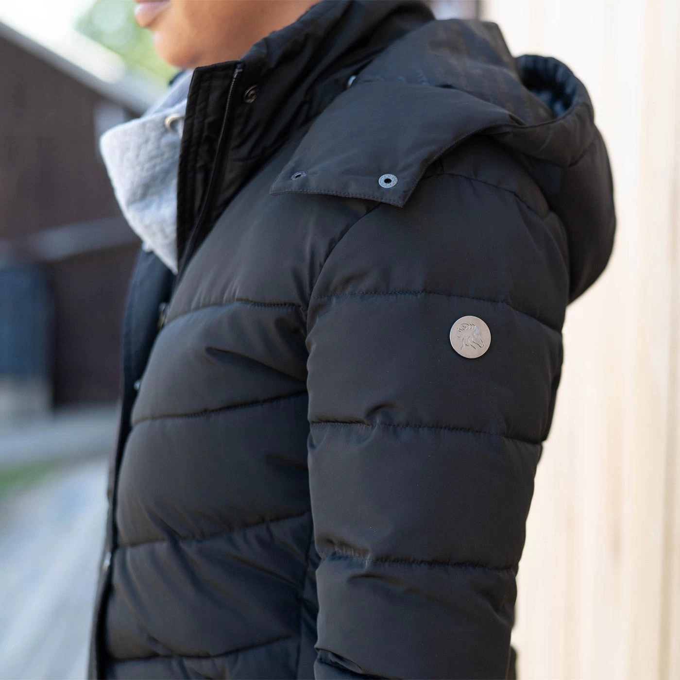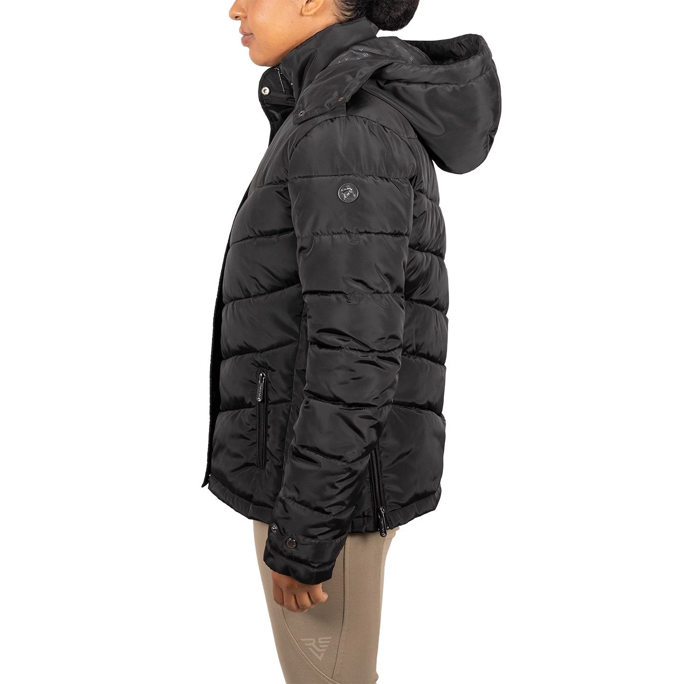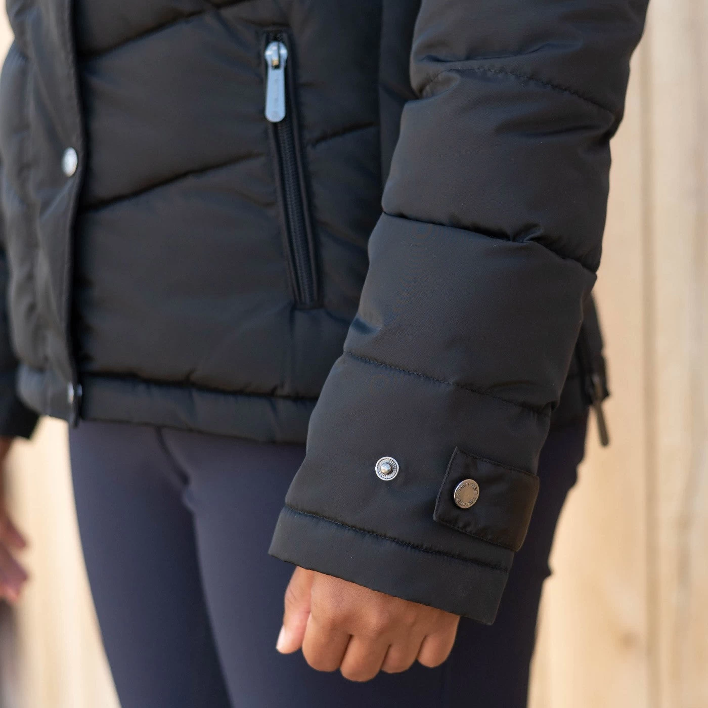 The TemTeq Manitoulin Jacket offers a quilted winter jacket that is suitable for in the saddle or around the barn. Features a luxury, and detachable, faux fur trimmed hood, with knit cuffs for added warmth. Complete with a two-way front zipper, two back vents, silver snaps, and TemTeq’s signature lining and metal badge on the left shoulder.