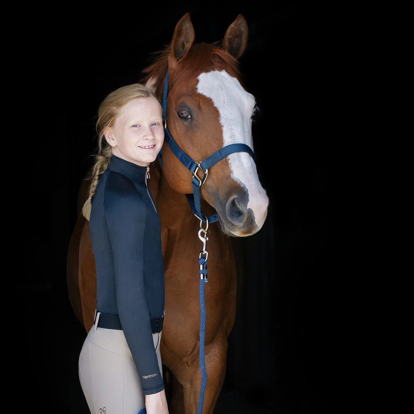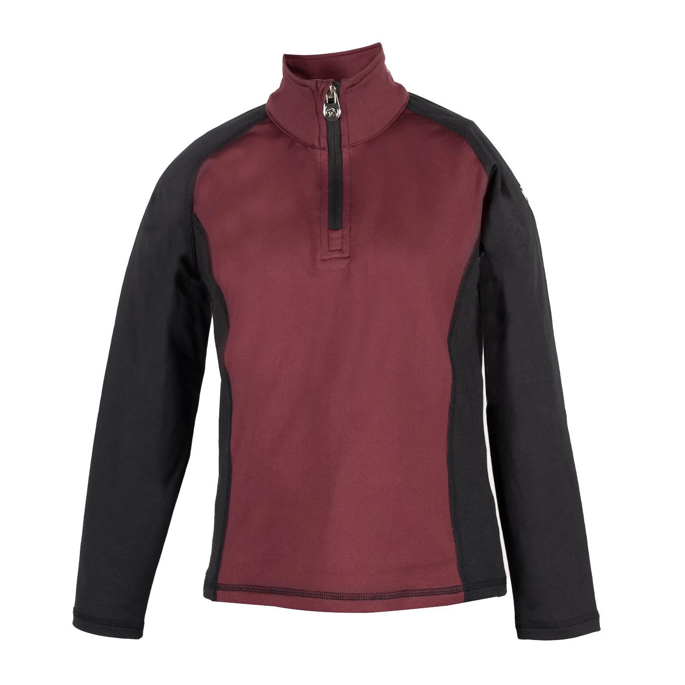 The TemTeq Selena Top is perfect for layering or on its own with its performance stretch outer and fleece lined inner to help keep you comfortable and warm. Features a 1/4 zip front and stirrup shaped zipper pull for added equestrian flare. Complete with the TemTeq logo on the chest.