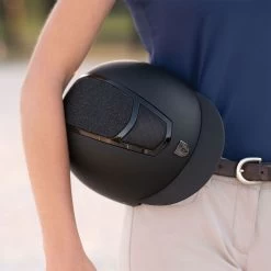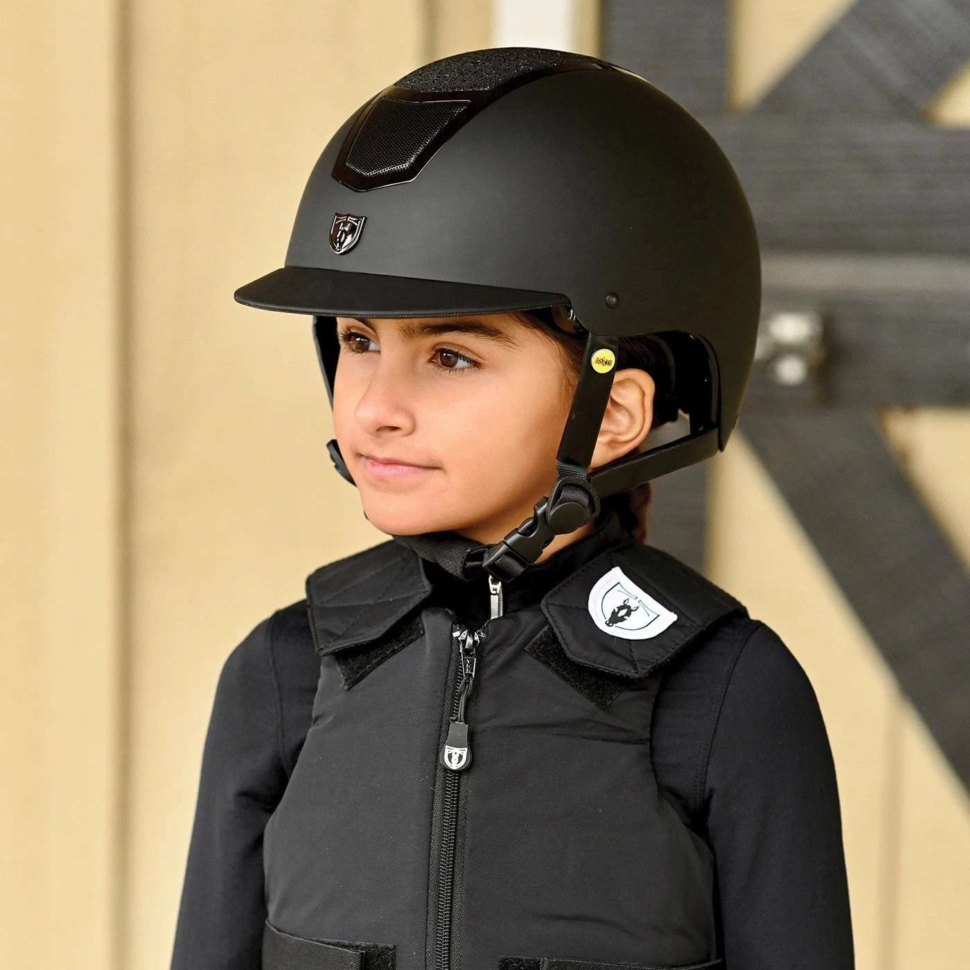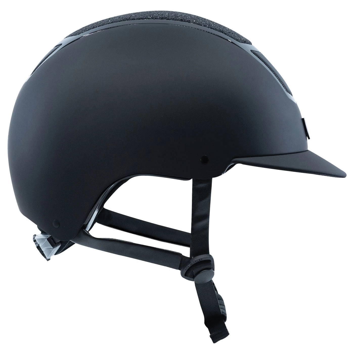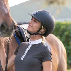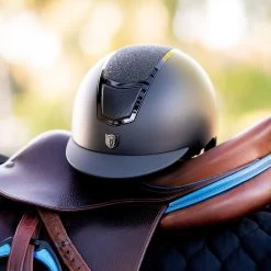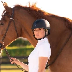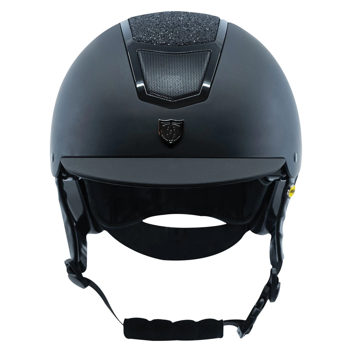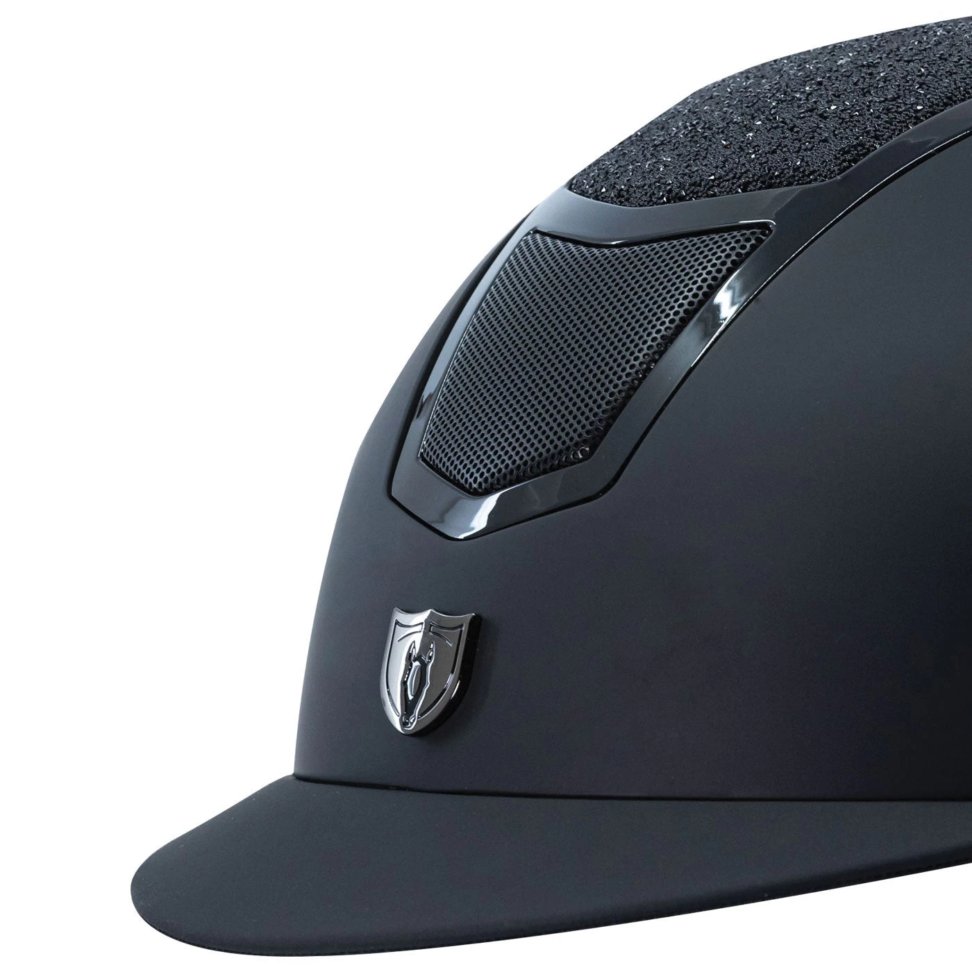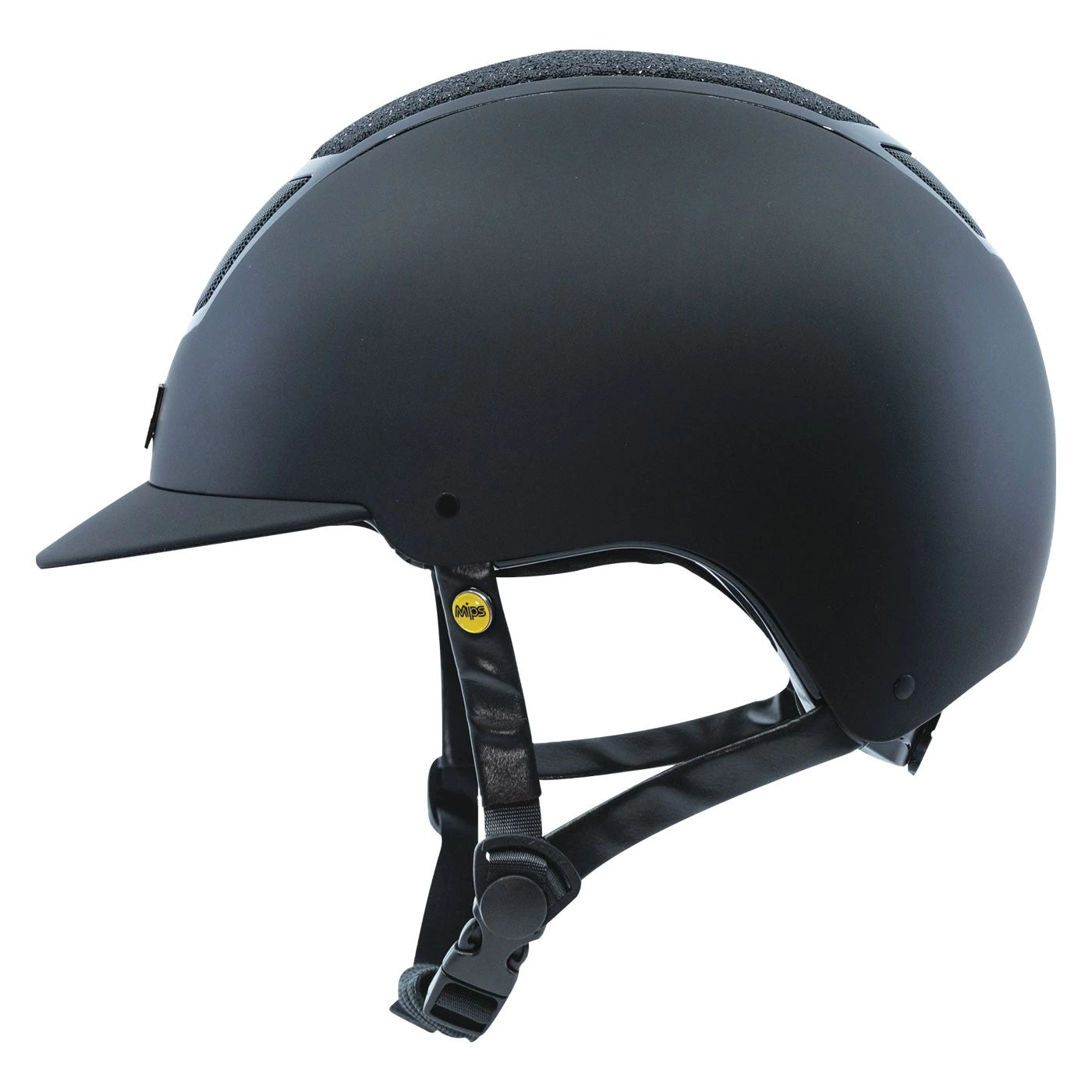 The Tipperary Devon with MIPS Helmet is an elegant traditional brim helmet appropriate for the show ring. The outer shell provides full coverage, and the interior provides an unbelievably comfortable fit that can be locked in place with the Tipperary Retention System. Complete with an adjustable dial for the perfect fit, MIPS technology and a sparkle top with a black gloss trim for added style.