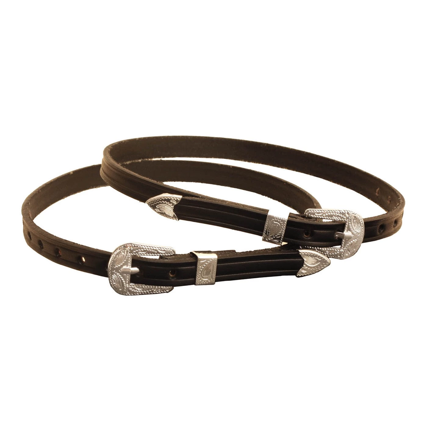 Tory Leather Fancy Spur Straps are made from high quality bridle leather. Designed to fit a variety of spurs with reinforced stitching throughout at all stress points, you won’t be disappointed! Finished with detailed stitching throughout and top quality hardware, these spur straps will complete your show ring look today! Decorative metal detailing at the buckle, keeper and strap end. Sold as a pair.