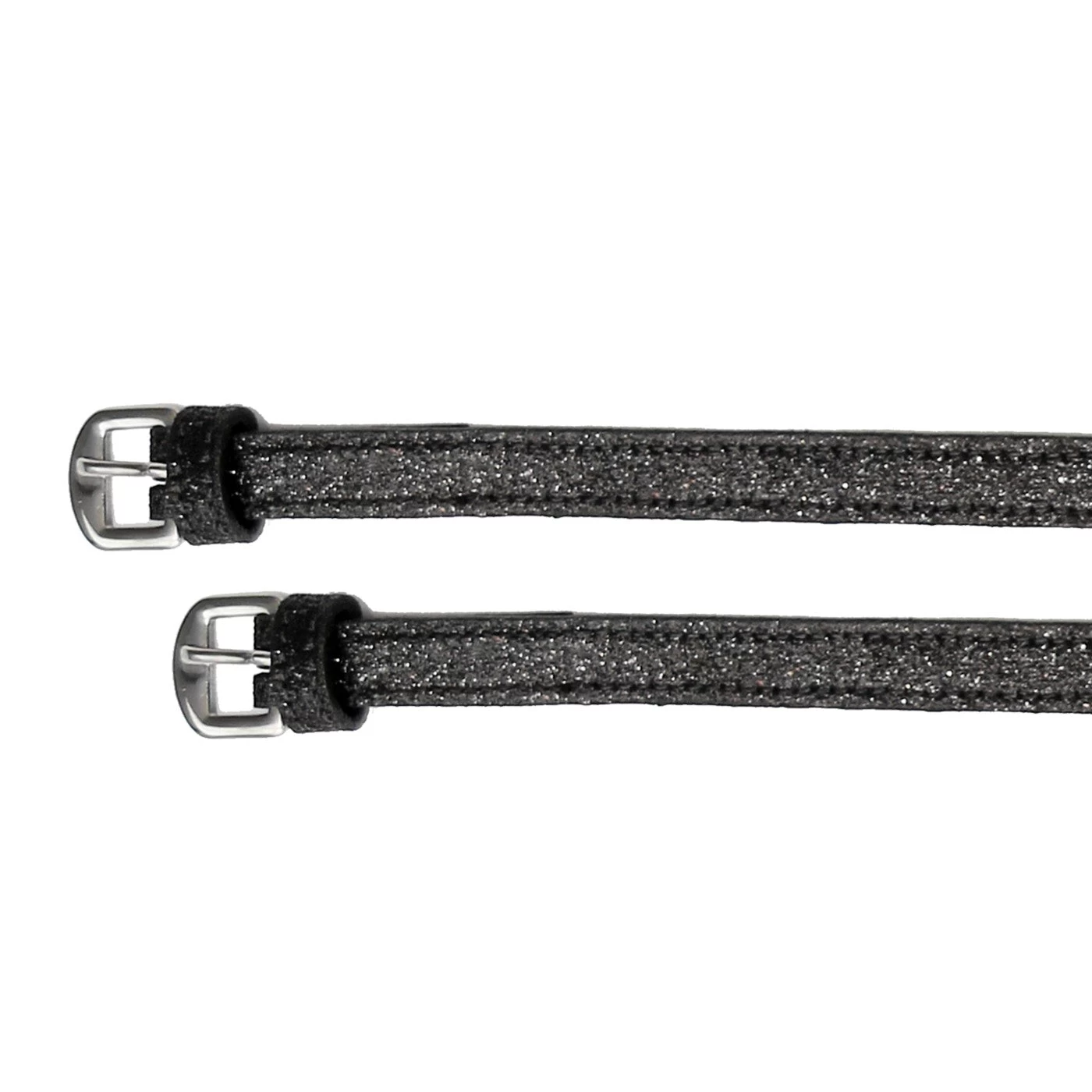 The Waldhausen Black Shine Spur Straps are made of real leather for added durability and feature a shimmering insert in synthetic material. Suitable for adding a touch of style to your show ring look.