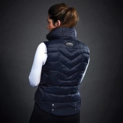 The WeatherBeeta Dion Puffer Vest is a sporty and elegant nylon puffer in a flattering fit. The chic silver nylon full center zip and pockets, mock inner collar and back riding vents with snap closure provide a stylish look this winter. This puffer vest is perfect for riding and training, with its wind and water resistant properties.